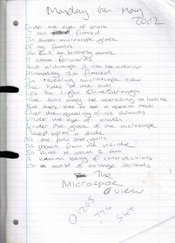 The Microscope View – Written Monday 6th May 2002 (Aged 27)