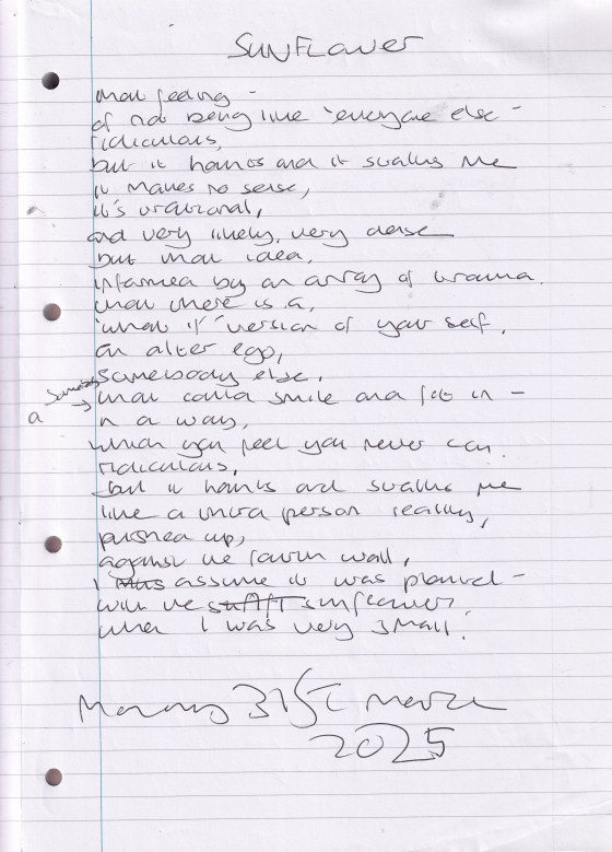 Sunflower – Written Monday 31st March 2025 (Aged 50)