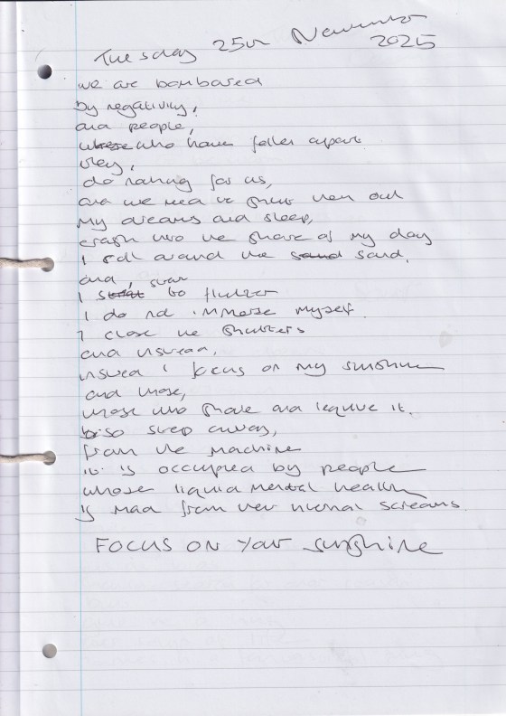 Focus On Your Sunshine – Written Tuesday 25th November 2025 (aged 50)