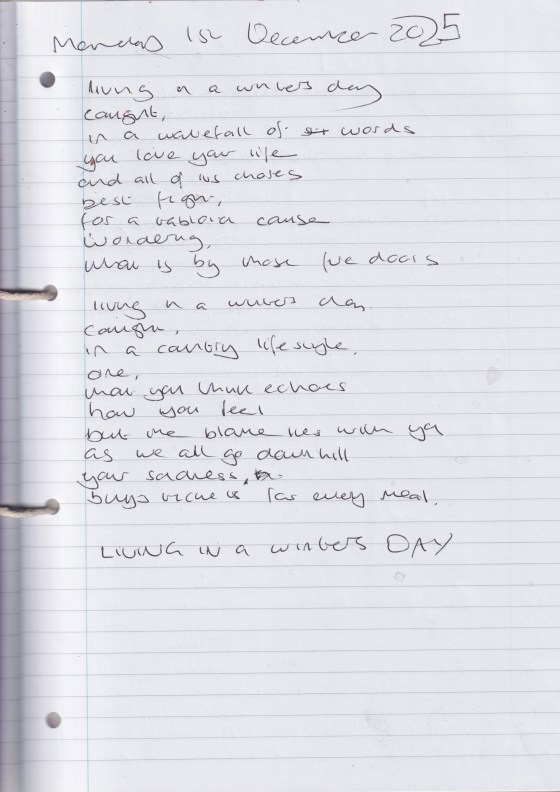 Living In a Winters Day – Written Monday 1st December 2025 (Aged 50)