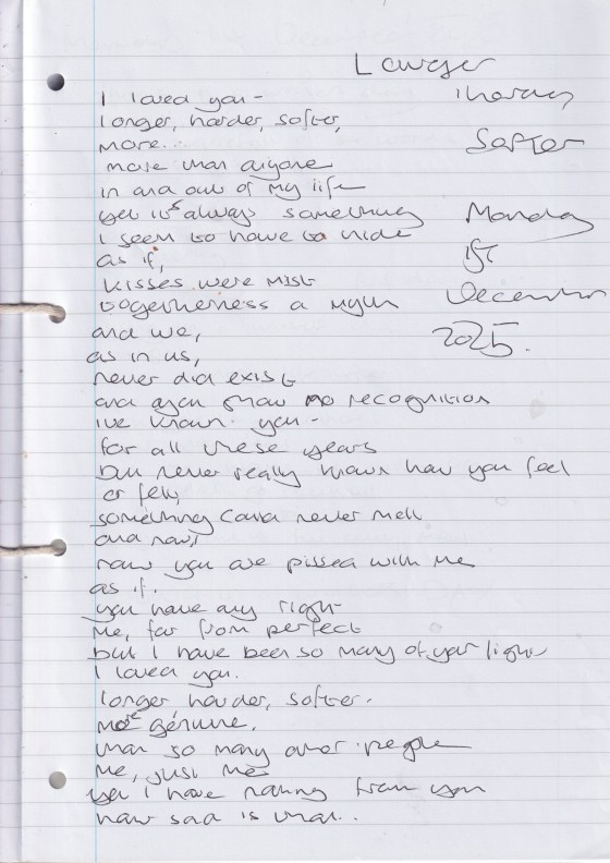 Longer, Harder Softer – Written Monday 1st December 2025 (Aged 50)