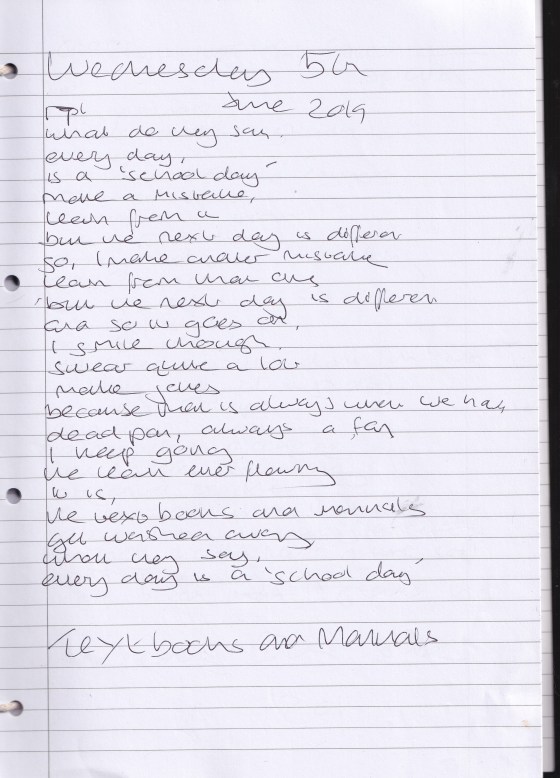 Textbooks and Manuals what do they say?everyday,is like a, ‘school day’make a mistake learn from itbut the next day is … More