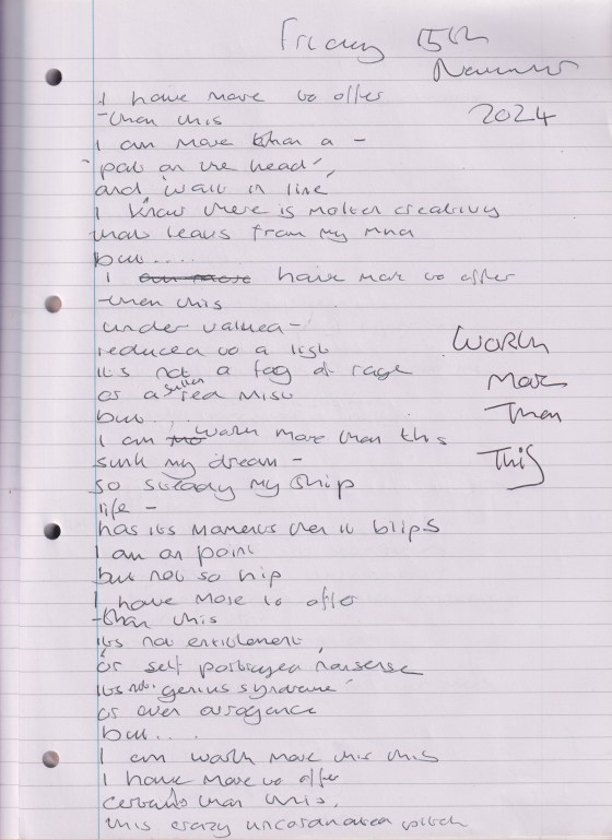 Worth More Than This – Written Friday 15th November 2024 (Aged 49)