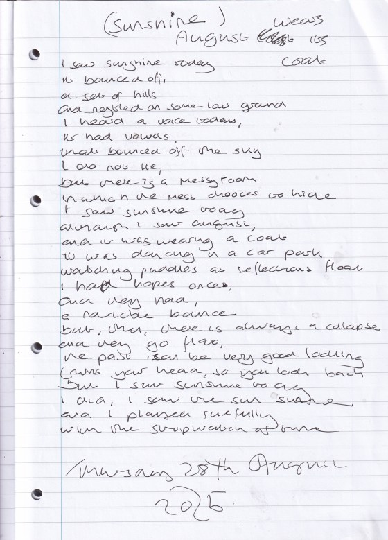 August Wears Its Coat – Written Thursday 28th August 2025 (Aged 50) But I saw sunshine today, and I did. I saw the sunshine.