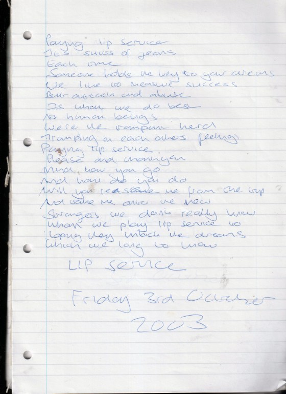 Lip Service – Written Friday 3rd October 2003 (Aged 28)