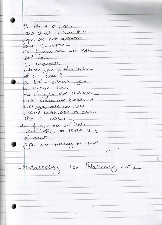 Remembering – Written Thursday 2nd February 2012 (Aged 36)