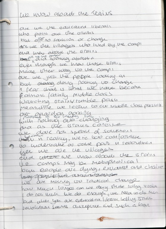 We Know About the Trains are we the educated liberals who point out truths but offer no solution or change … More