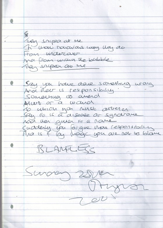 Blameless – Written Sunday 28th August 2005 (Aged 30)