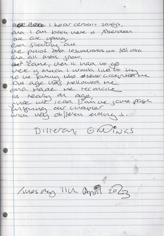 Different Endings – Written Tuesday 11th April 2023 (Aged 48)