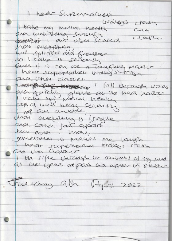 I Hear Supermarket Trolleys Crash and Clatter – Written Tuesday 9th April 2023 (Aged 48)
