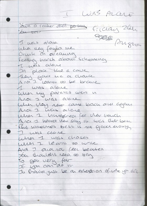 I Was Alone – Written Friday 26th August 2005 (Aged 30)