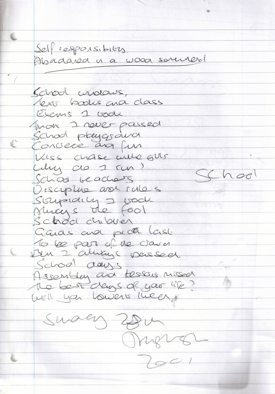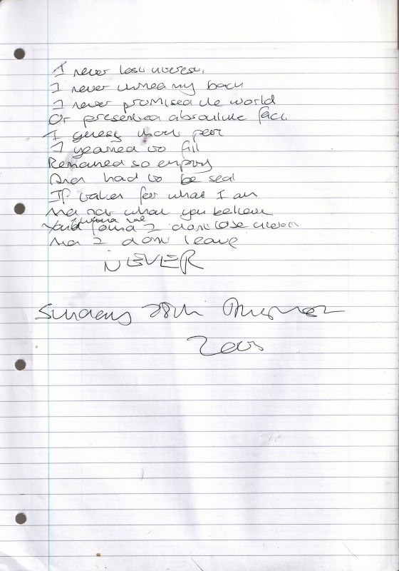 Never – Written Sunday 28th August 2005 (Aged 30)
