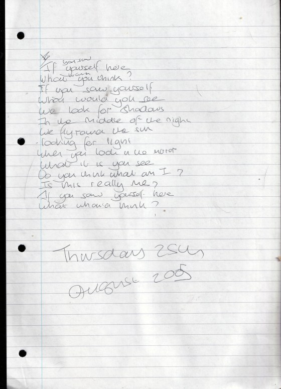 Shadows – Written Thursday 25th August 2005 (Aged 30)