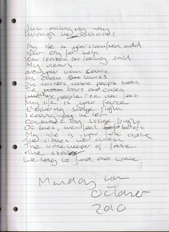 This Dating Game is Like a Ten Ton Truck Running Me Down – Written December 2009 (Aged 34)