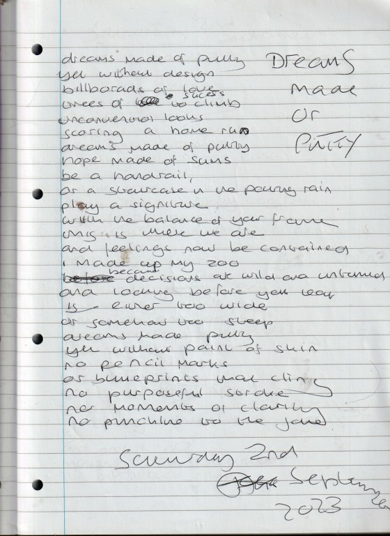 Dreams Made of Putty – Written Saturday 2nd September 2023 (Aged 48)