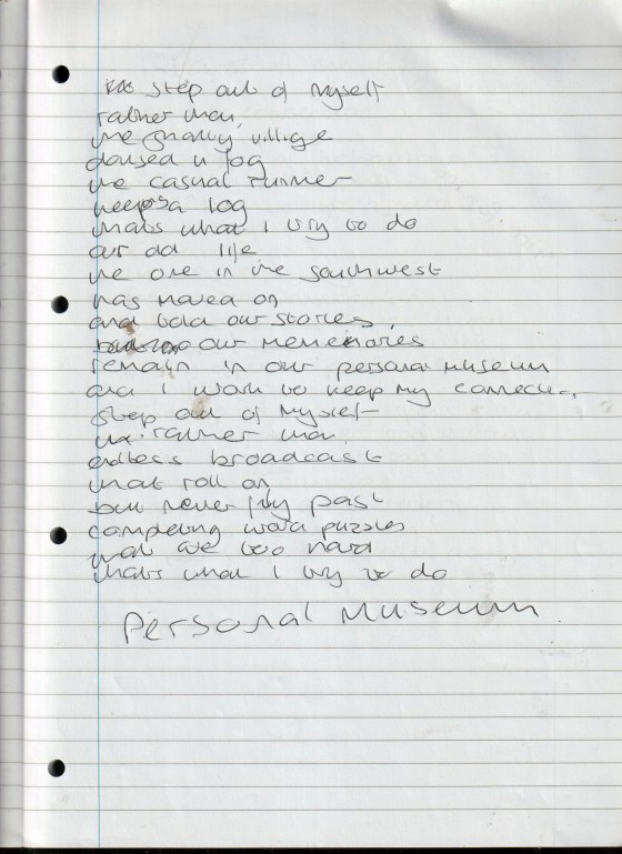 Personal Museum i step out of myself rather than,the shanty village that is doused in fog the casual runner keeping … More