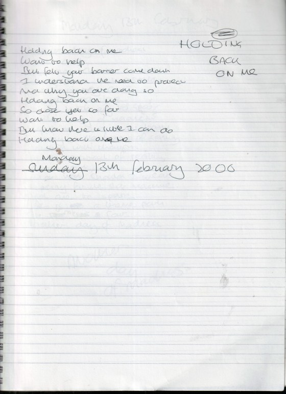 Holding Back On Me – Written Monday 13th February 2006 (Aged 30)