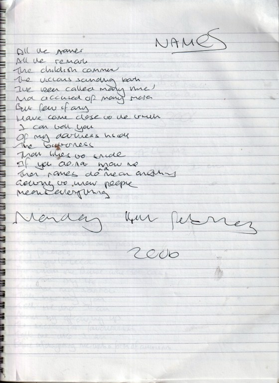 Names – Written Monday 13th February 2006 (Aged 30)