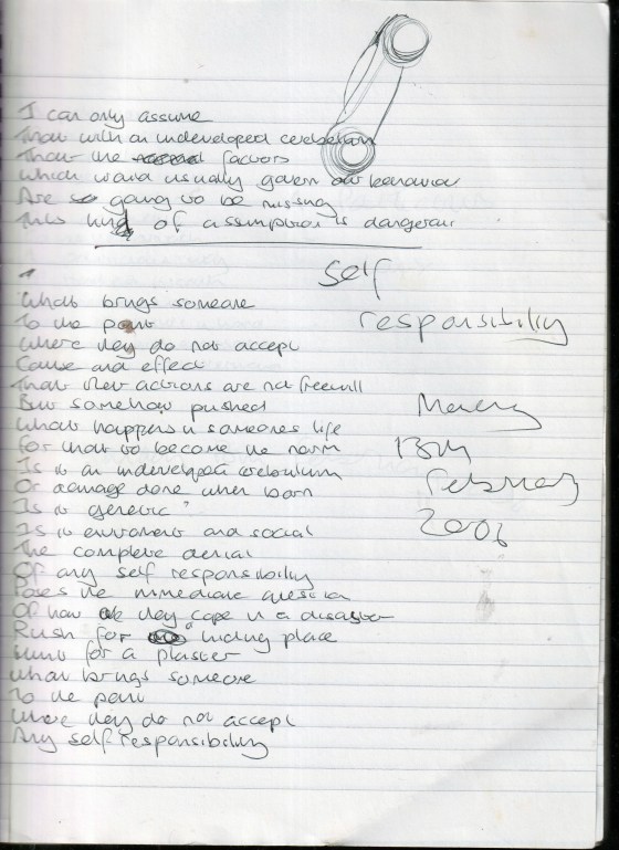Self Responsibility – Written Monday 13th February 2006 (Aged 30)