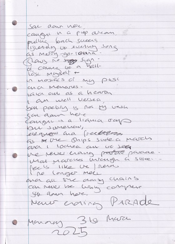 Never Ending Parade – Written Monday 31st March 2025 (Aged 50)