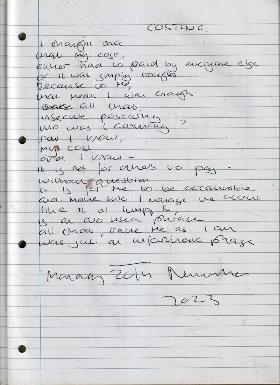 Costing – Written Monday 20th November 2023 (Aged 48)