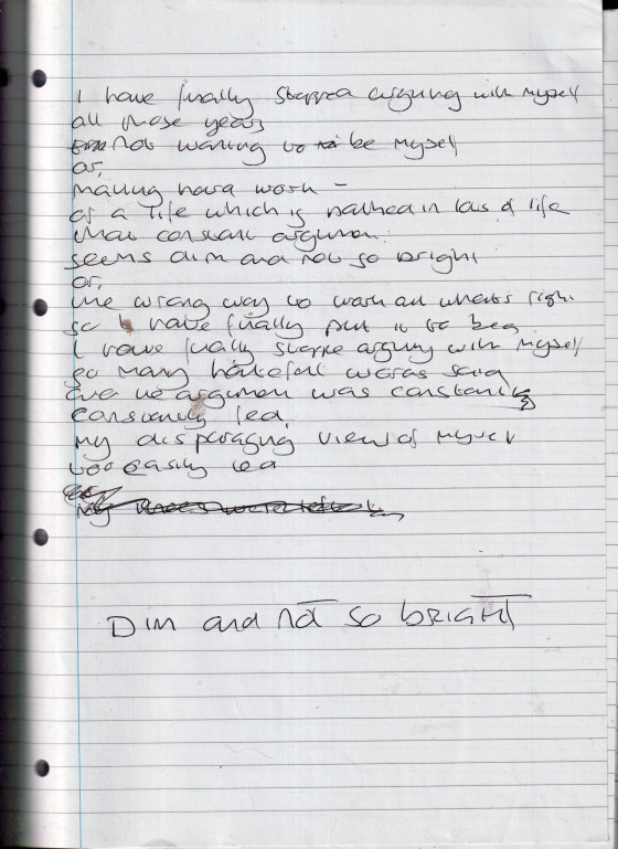 Dim And Not So Bright – Written October 2023 (Aged 48) i have finally stopped arguing with myself all those years, of not wanting to be myself