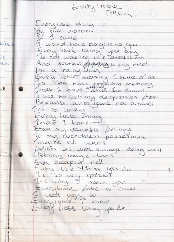 Every Little Thing – Written Approx. Late 1993 or January 1994 (Aged 18)