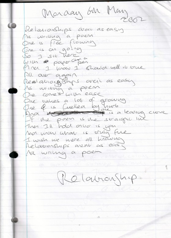Relationship – Written Monday 6th May 2002 (Aged 27)