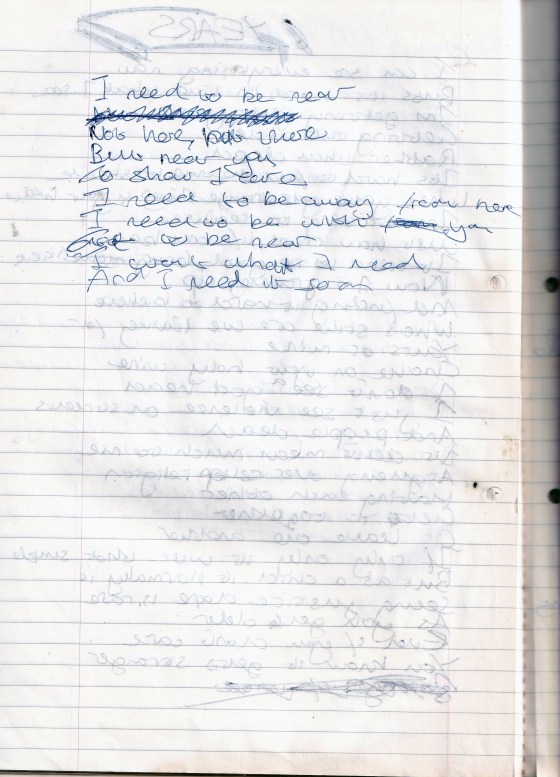 I Need to Be There – Written Approx. Late 1993 or January 1994 (Aged 18)