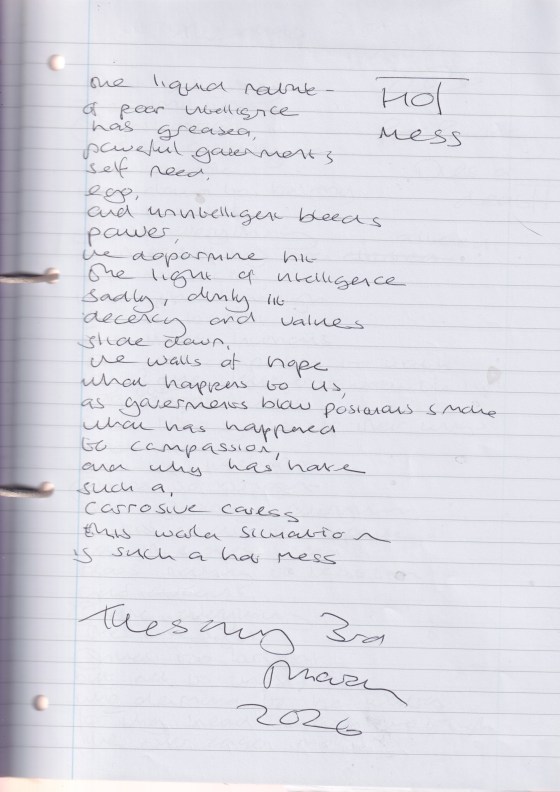 Hot Mess – Written Tuesday 3rd March 2026 (Aged 51) Power, the dopamine hit — the light of any intelligence sadly, barely lit.