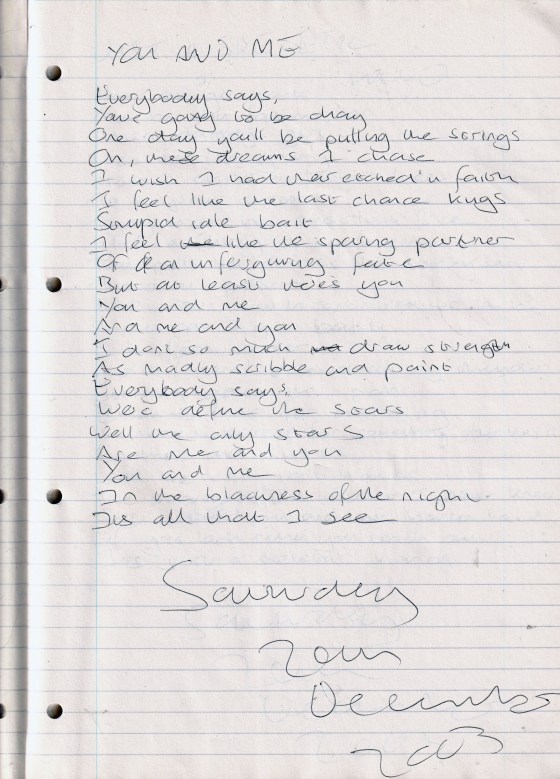 You and Me – Written Saturday 20th December 2003 (Aged 28)