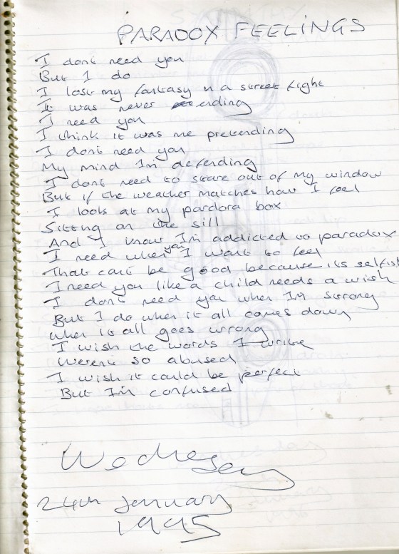 Paradox Feelings – Written Wednesday 24th January 1996 (Aged 20)